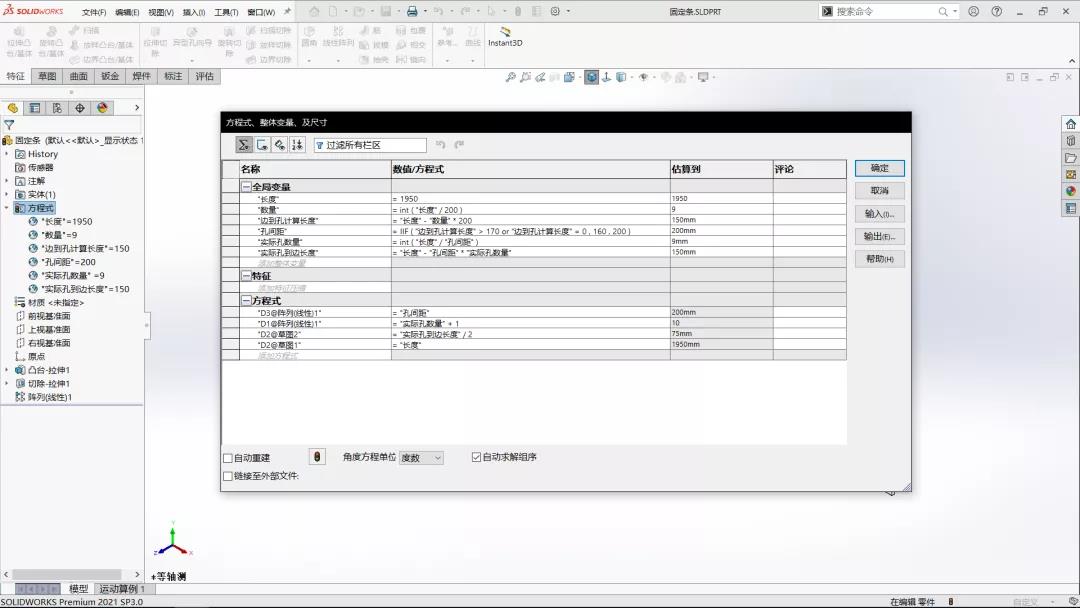 SOLIDWORKS方程式的應(yīng)用-固定條參數(shù)化設(shè)計(jì)