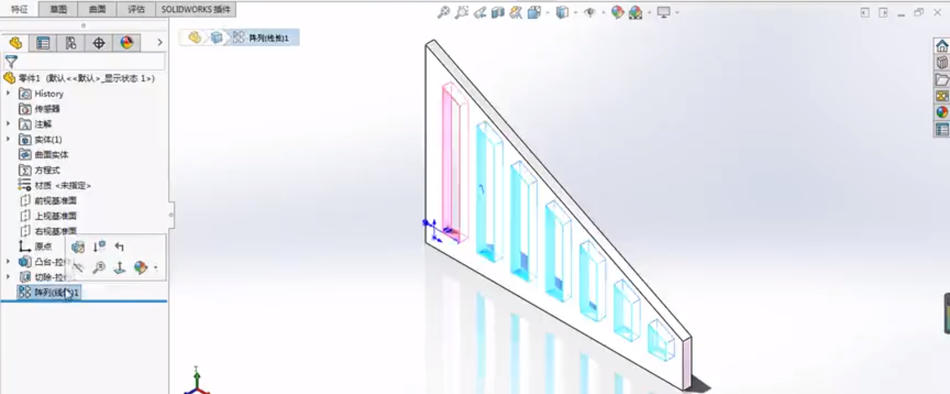 在SOLIDWORKS建模中,陣列是常用的功能,陣列的原理是復(fù)制所選的源特征,一般得到的陣列特征和源特征相同,但也不絕對(duì)相同,本次和大家分享幾種得到變化形狀的陣列......