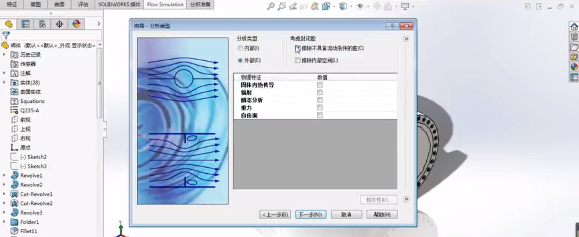 使用SOLIDWORKS Flow Simulation項(xiàng)目向?qū)лp松創(chuàng)建流體分析