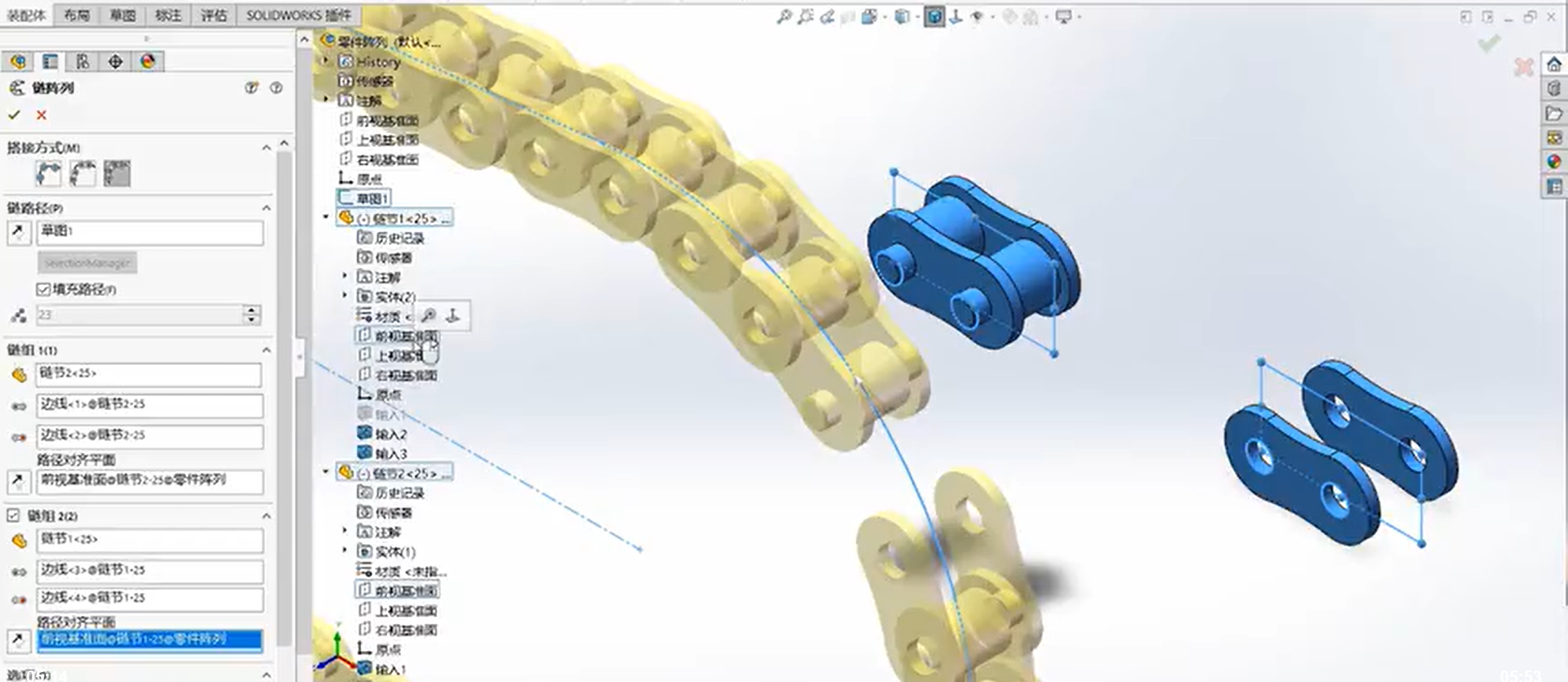 本期視頻分為兩部分內(nèi)容,第一部分是根據(jù)前面一期鏈條參數(shù)化處理方法視頻(鏈條參數(shù)化設(shè)計(jì))的反饋,對(duì)該方法的優(yōu)化,主要是對(duì)鏈條路徑繪制方法和鏈條形狀的優(yōu)化;第二部分內(nèi)容是不使用參數(shù)化的方法,在裝配體中直接...